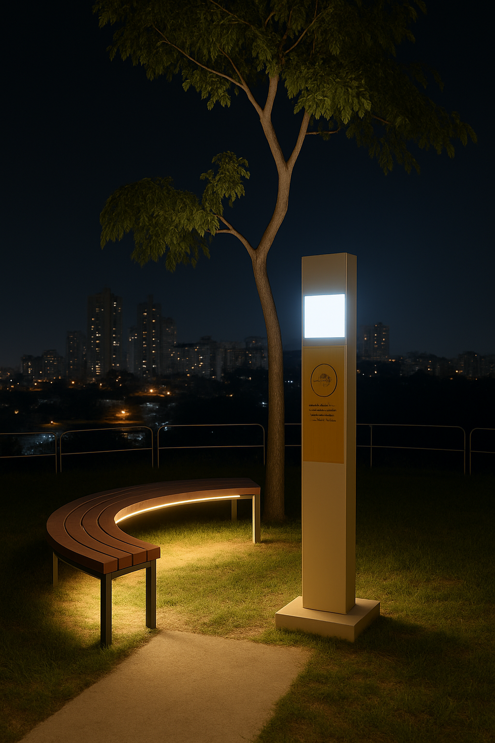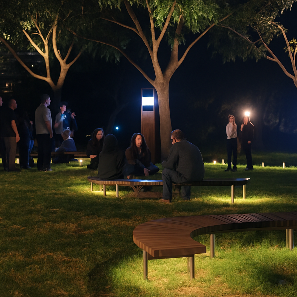 Each tree was illuminated with dual lighting: soft bench lighting underneath to allow for a quiet moment of reflection and remembrance, and a spotlight shining on the tree itself – symbolizing the light that the victims continue to radiate even after their passing.