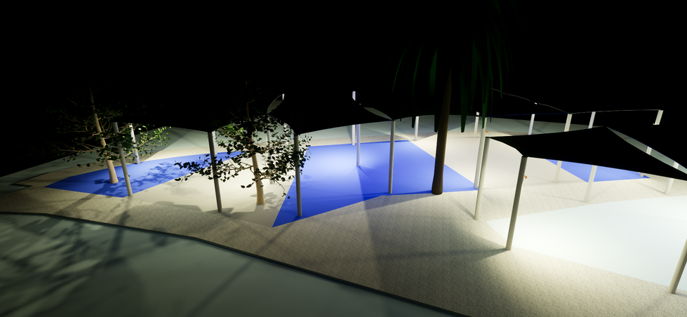 - The project consists of two areas – a spectacular Ninja compound spanning 396 square meters, and a charming swings area covering 257 square meters. Both areas are surrounded by stylish shading poles equipped with advanced lighting fixtures, enabling evening activity and creating a welcoming, safe, and pleasant atmosphere for the whole family.